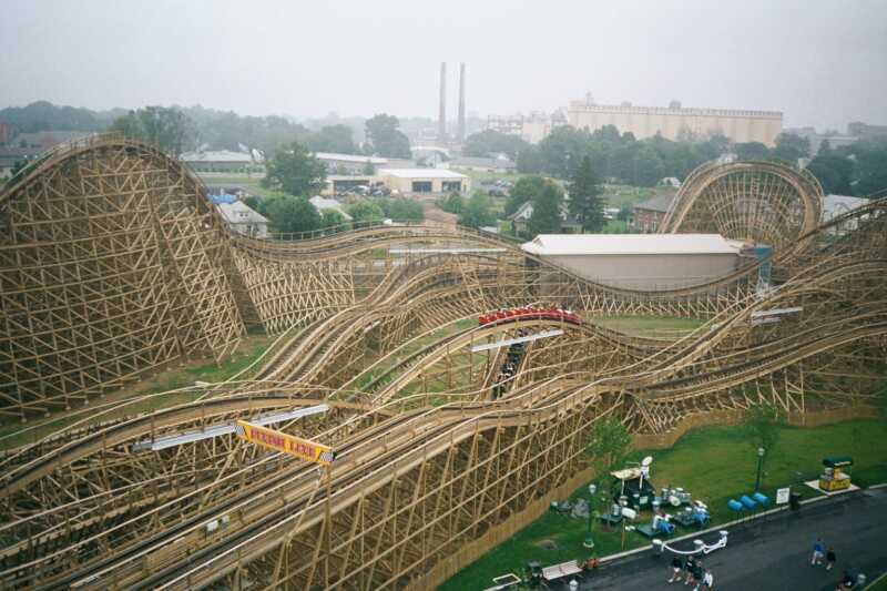 - Boulder Dash - Looming beyond the peaceful midway. Notice the actual boulder itself!